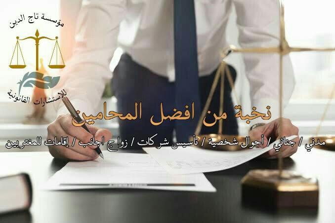 مؤسسسة تاج الدين للاستشارات القانونية تتميز بخبرة طويلة في كل التخصصات المدنية والجنائية والاحوال الشخصية وتأسيس الشركات وزواج الاجانب واقامات المغتربين..