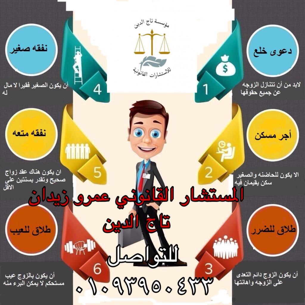 افضل استشارات قانونية من خلال محامين محترفين علي درايه بفروع القانون المختلفه لو عندك اي مشكله قضائيه كلمنا دلوقتي (متاح الاستفسار مجانا في اي وقت).مؤسسسة تاج الدين للاستشارات القانونية تتميز بخبرة طويلة في كل التخصصات المدنية والجنائية والاحوال الشخصية وتأسيس الشركات وزواج الاجانب واقامات المغتربين..